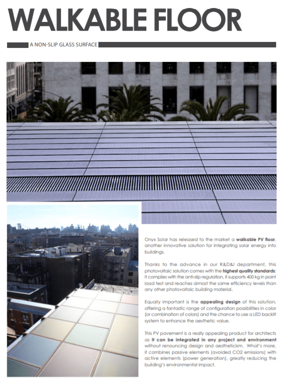 Onyx Solar can customize the photovoltaic glass to supply it in different sizes, colours and degrees of transparency. These characteristics mean that it is the ideal material for installation as a photovoltaic curtain wall.